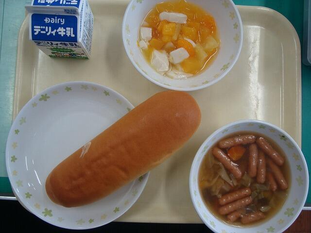 チーズパン 牛乳 春キャベツのスープ煮 フルーツカクテル