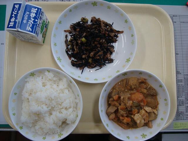 白ごはん 牛乳 ポークカレー ひじきのサラダ