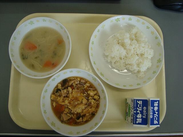白ご飯 牛乳 親子丼 新じゃがのみそ汁