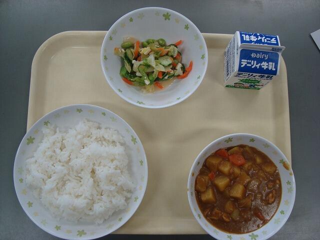 白いご飯 牛乳 ポークカレー 青豆とチーズのサラダ