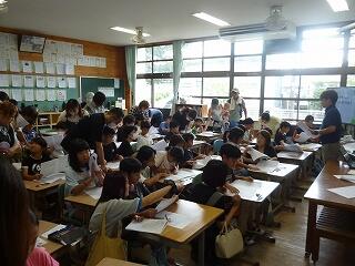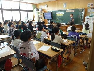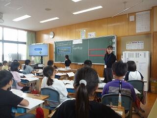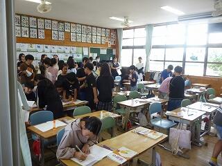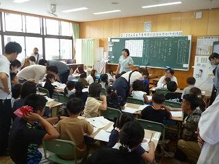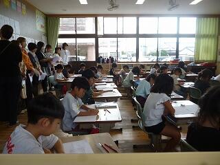5年1組の子どもたちは、多くの参観者に囲まれながらも、堂々とした態度で生き生きと学習していました。