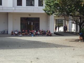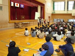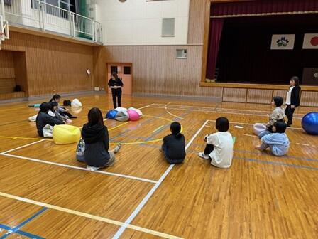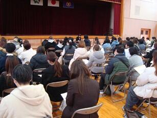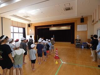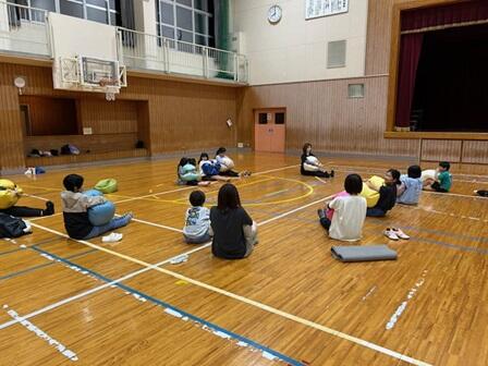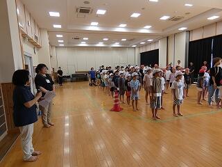 ⇓⇓⇓ 体育館で児童と講師の先生方の対面式です。