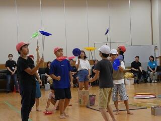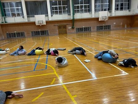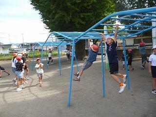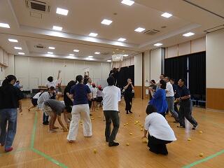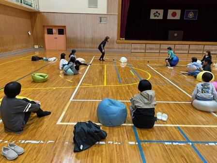下学年、上学年、保護者の部ごとにバスケットの高さを変えるなど、ルールを工夫して実施されました。初めて経験する人が多く、最初はなかなか入りませんでしたが、練習やゲームを重ねるうちにコツをつかんでいたようです。100個めのアンカーボールが入ったときは「やったあ。」という歓声が上がりました。