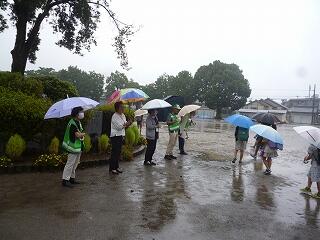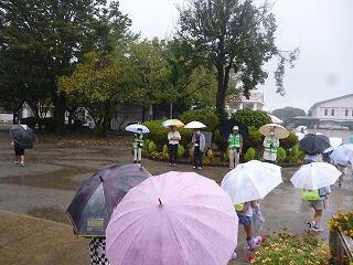 【早水公園に集合】雨のため、予定していた「出発式」はできませんでした。
