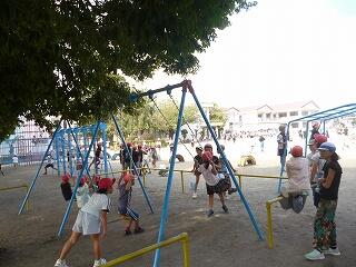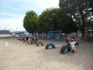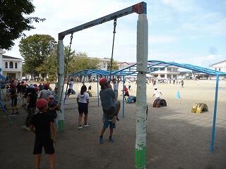 9月6日(土)には、「ミニ運動会」が行われました。子どもたちが赤団と白団に分かれ、あめ玉リレー、借り物競走、玉入れ、パン食い競走などを楽しみました。