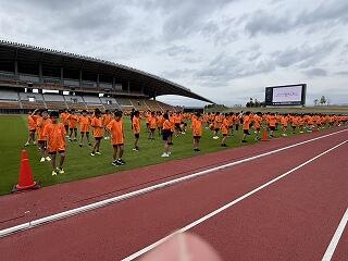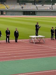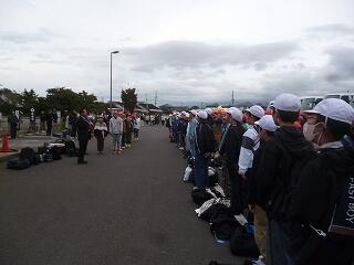 ↑↑↑いつもの全校集会のように、無言で集まっています。静寂に包まれた会場で結団式が始まりました。