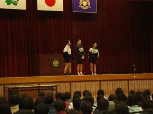 この日は、お世話になっているスクールガードさんに、感謝の気持ちを伝える集会がありました。