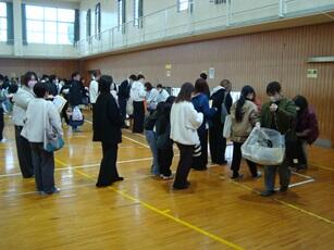 雨の昼休み時間。体育館に多くのみんなが集まってくれました。