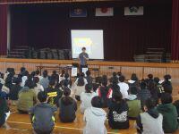 3月4日(月)は、今年度最後の全校朝会でした。いつものように、静かに体育館に集まることができた祝吉っ子でした。