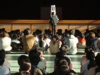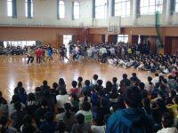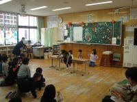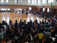 まず、学校の体育館でお別れ集会を行いました。集会では、1年~5年から6年生への歌のプレゼントがあり、その後、各学年からのクイズの出し物がありました。