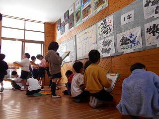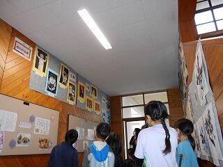 2月20日(火)~3月7日(木)、校内作品展を行っています。作品は、各学級から1点ずつ掲示しています。この期間に、各学級の図画工作科の時間に観賞の学習を行っています。先日の参観日では保護者の皆様にも見ていただきました。
