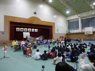 体育館がコンサート仕様に装飾され、保護者や児童、地域の方など、多くのみなさんが体育館に集まりました。