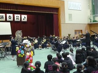祝吉小吹奏楽部は、6年生が中心となって自主的に活動してきました。今回の演奏会も、自分たちで練習を重ね、顧問の先生に助言を受けながら作り上げてきたそうです。祝吉中学校の吹奏楽部のみなさんによるすばらしい演奏や、小中合同の演奏もありました。