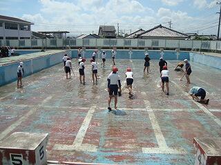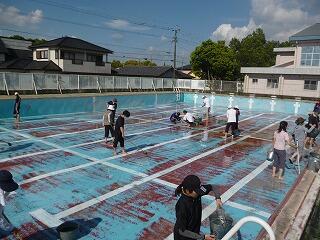 放課後には先生方が仕上げをしました。来週のプール開きが楽しみです。