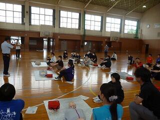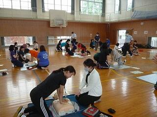 先生方の研修時間に救命講習会を行いました。講師は都城市消防局の方です。