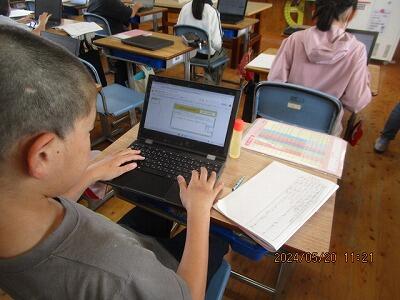 子どもたちは、黙々と、タイピングを進めます。