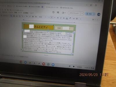 プレゼンテーションソフトで、クロームブックに、文章としてまとめているのです。