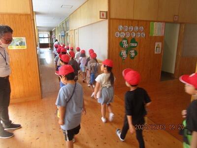 その後、子どもたちは、無言で、教室から廊下に出てきました。