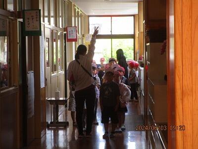 お隣は、係の子どもさんが、チョキ!