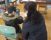 今回は、特別支援学級を中心に学習支援をしていただきました。今回も、児童と一緒にキャリア教育に関するキャリアパスポート用のフォルダを作成したり、紙ベースで作成していた資料をタブレットで写真に撮って保存したり、エデアルというWeb上のソフトを紹介してもらって操作しながら学習したりしていました。