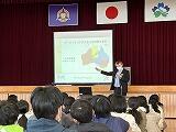 今回は、国際交流員のジョージさんをお招きして、母国であるオーストラリアの様々な特徴や文化等について、写真や説明等を通して分かりやすく説明していただきました。子どもたちは、社会科の学習の中で、他国の生活習慣や文化等の日本との違いについて学んでいるため、関心をもって学ぶことができました。