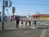 学校周辺にある施設やお店について、4つのコースに分かれて調べました。子どもたちは、地区公民館や、美容室、交番、郵便局などに着くと、自分たちの考えた質問を熱心にインタビューしていました。