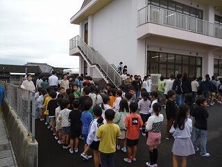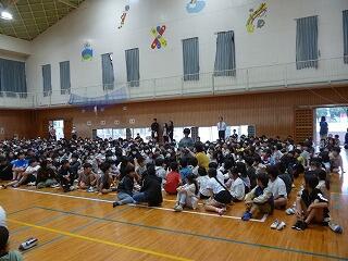↓↓↓全校児童が無言で集まり、真剣な雰囲気ができています。