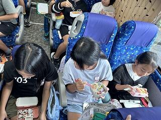 宮崎市の平和台公園に行きましたが雨のため、バスの中でお弁当。「初めてバスの中で食べました。おいしかったです。」という感想を話してくれました。