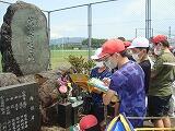 6年生が、「総合的な学習の時間」(平和学習)で、都城農業高校のグランドの端にある慰霊碑「動員学徒被爆殉没之地」を見学しました。太平洋戦争中に、学徒勤労動員令により都城の航空機工場に働きにきていた小林中学校の生徒たちが、防空壕に逃げる途中に爆撃にあい、10人の尊い命が奪われ、この慰霊碑が作られたそうです。