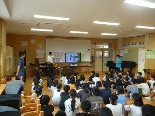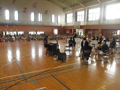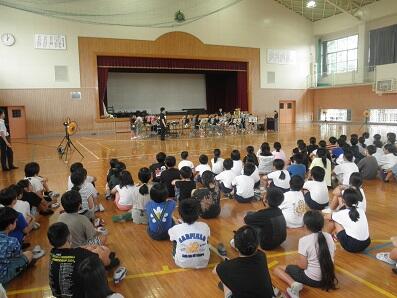 昼休みに4・5・6年生を体育館に招き(希望者のみ)吹奏楽部がミニコンサートを行いました。