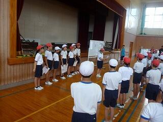 祝吉小の4つの宝(あいさつ 右一静歩 無言清掃 残さず食べる)やボランティア、勉強など、全校のみんなでがんばった1学期でした。