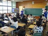 次に、「保健体育」の担当からの話を行いました。「体力の向上」に関する話で、特に「握力」と「投力」、「柔軟性」を伸ばしてほしいという内容でした。途中、担当で作成した寸劇や体力を高めるための実演などもあり、子どもたちは最後まで熱心に話を聞いていました。