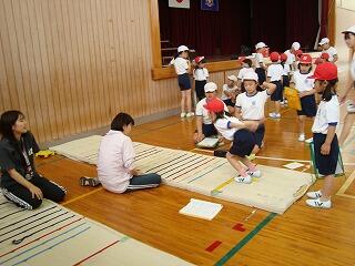 毎年実施していますが、1年生は初めてです。この日は、6年生にサポートしてもらいながら一つ一つの種目を頑張っていました。