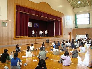 6年生は平和学習として、サラみやざきさんプロデュースによる朗読劇「受け継がれる想い」を鑑賞しました。このお話は、宮崎赤江海軍基地を背景に、特攻隊の仲間とその家族を描いたお話です。