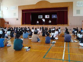 3年生は「非行防止教室」がありました。教えてくださったのは都城警察署の少年補導職員の方です。