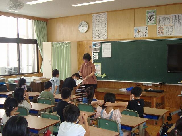 その後、各学級で夏休みの過ごし方や課題などについての説明を聞いたり、1学期のがんばりを記した「あゆみ」を受け取ったり、教室等の大掃除をしたりしました。