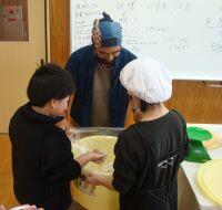 5年生はこれまで1学期から、総合的な学習の時間で「大豆から学ぶ」と題して大豆を植え、観察し、調べ学習を行ってきました。昨年度まで、大豆から豆腐を作る学習を行っていましたが、今年度は1月30日(火)に外部講師を招いてクラスごとに味噌づくりを行いました。