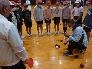 宮崎県障がい者スポーツ協会と宮崎県パラスポーツ指導員の先生方から、「ボッチャ競技」と「フライングディスク・アキュラシ―競技」についてご指導いただき、競技を体験しました。フライングディスクの投げ方や、ボッチャで使用するジャックボールの投げ方を練習し、ルールを教わりました。実際に競技を行うと、楽しさや難しさが分かり、チームごとに盛り上がっていました。南九州大学の学生さんからもお手伝いをいただきました。