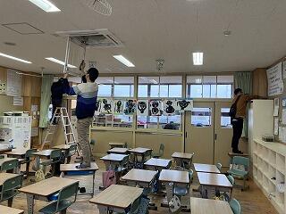 今回は、教室のエアコンフィルターや扇風機、窓ふきが中心です。子どもたちでは手の届かない場所を、丁寧に、すみずみまで清掃してくださいました。想像以上に埃がたまっていたエアコンフィルターもきれいになり、エアコンの効き具合もかなり良くなると思います。高い部分の窓や棚もピカピカにしていただきました。おかげさまで、子どもたちが気持ちよく過ごすことができます。