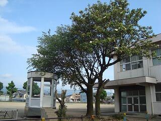しかしながら、花は高い木の梢に上向きに咲くので、地面に立つ人の目の高さからは近寄って見ることが難しいのが実情です。ですから、2階のパソコン室や放送室から見るのがベストポジションと言えます。