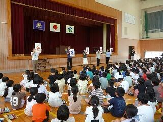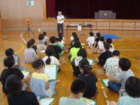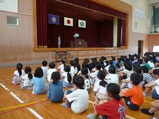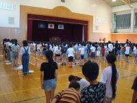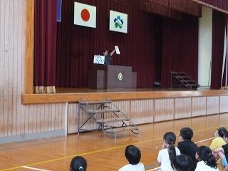 あいさつがよくできていること、思いやりのある行動が多く見られたこと、地域の方から嬉しい報告をいただいたことなど、いっぱい褒めていただきました。明日からの夏休みについては、「命」を大切にして行動してほしいというお話でした。