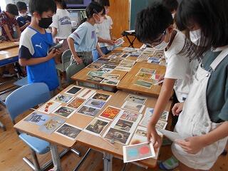子どもたちは様々な作品について話し合いながら鑑賞しました。グループで活発に話し合って仲間分けをし、各グループの仲間分けについて発表しました。
