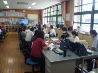 子どもたちは夏季休業中ですが、先生方は、校内で研修や作業、個人面談等を行っています。