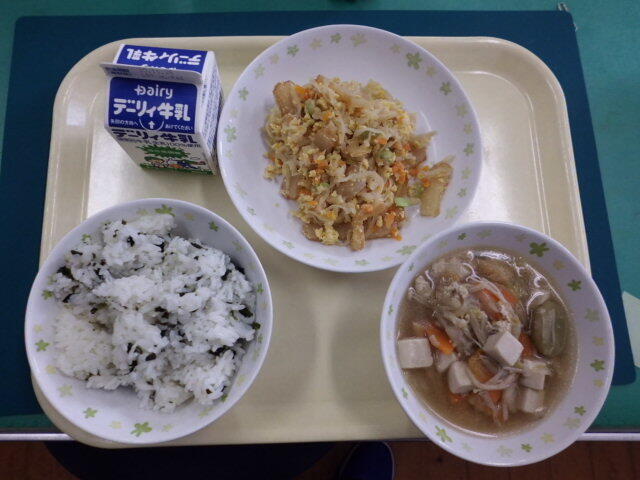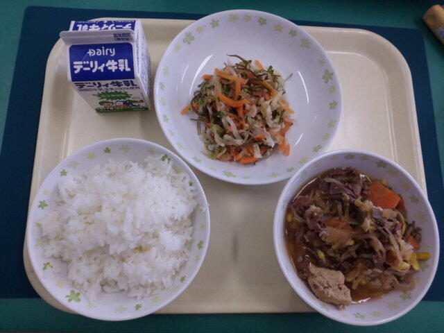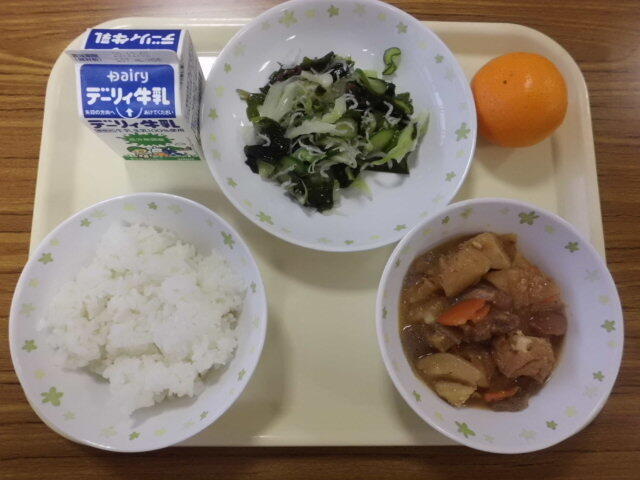 ごはん なんこつのみそ煮 かいそうサラダ みかん