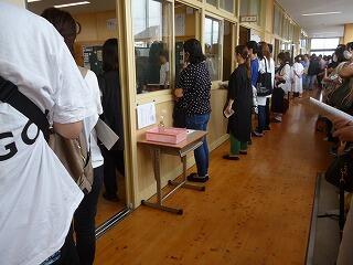 今年度は、地区別に時間帯を分けて、迎えに来ていただくようにしました。また、運動場にコースを作り、保護者が車を降りずに引き渡しができるようにしました。