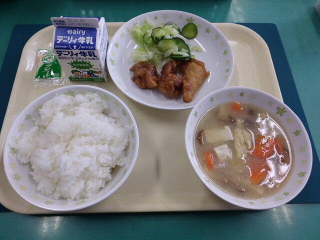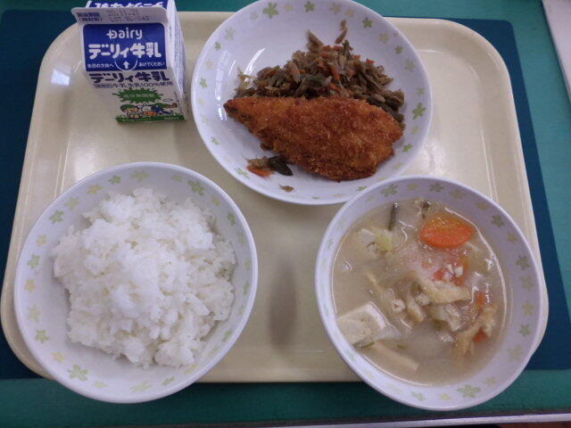 ごはん さけフライ きんぴらごぼう さといものみそ汁
