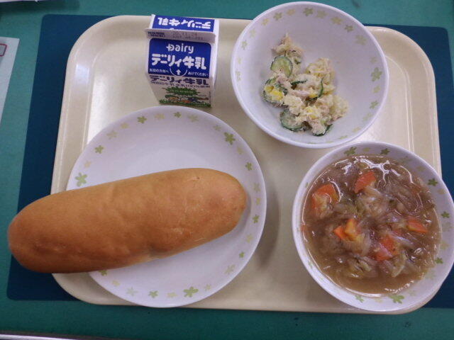 コッペパン パンプキンスープ ほうれんそうのソテー