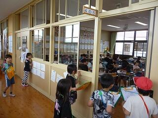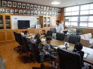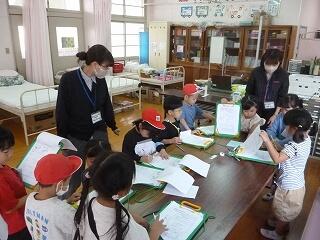 この日は、グループごとに学校探検をしました。「しょくいんしつ」「おんがくしつ」「ほけんしつ」・・・どこにあるのかな?と考えながら進んでいった1年生。部屋に入るときのあいさつも上手にできていました。部屋の中にどんなものがあるか、先生の名前など、ワークシートに書き込みながら覚えていったようです。