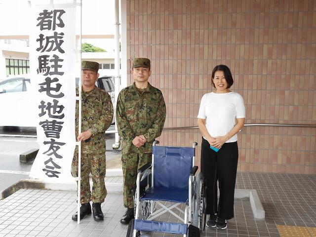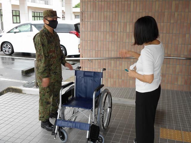 8月17日に、陸上自衛隊 都城駐屯地 曹友会から、車いす1台を寄贈して頂きました。夏休み中でもありましたので、子どもたちの代表ではなく校長が担当の方々から直接受け取りました。