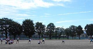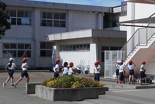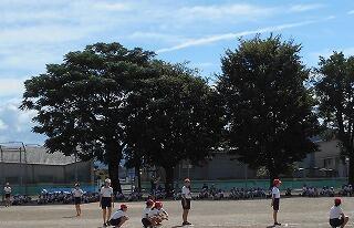 校庭の奥の方で木陰が子どもたちを暑さから守ってくれています。